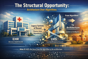 For a CIO or CTO, the commonality between a hospital and a university lies in their data architecture. Both rely on legacy foundational systems – Electronic Health Records (EHR) and Learning Management Systems (LMS) – that serve as passive repositories of data. They are systems of record, not systems of intelligence. Arina AI shifts the focus from the algorithm to the architecture.